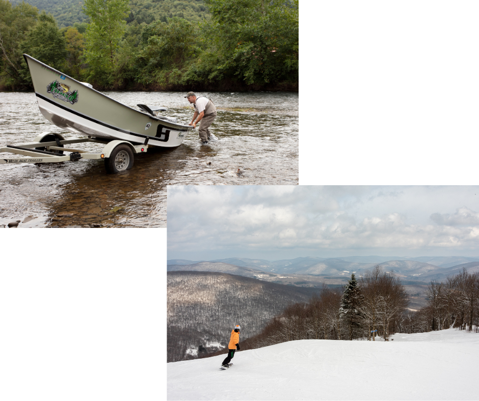 The Great Western Catskills offers four seasons of adventure, featuring winter activities such as snow tubing and cross-country skiing, spring adventures like world-renowned fishing, summer fairs and festivals, kayaking, and swimming, and fall leaf-peeping that is unparalleled. Start planning your getaway with us!